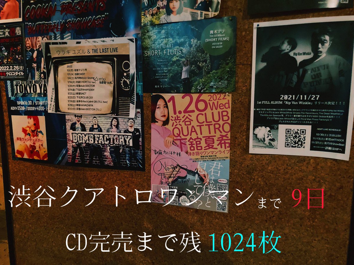 2022年1月26日(水)渋谷クアトロ弾き語りワンマン🔥まで12日。
